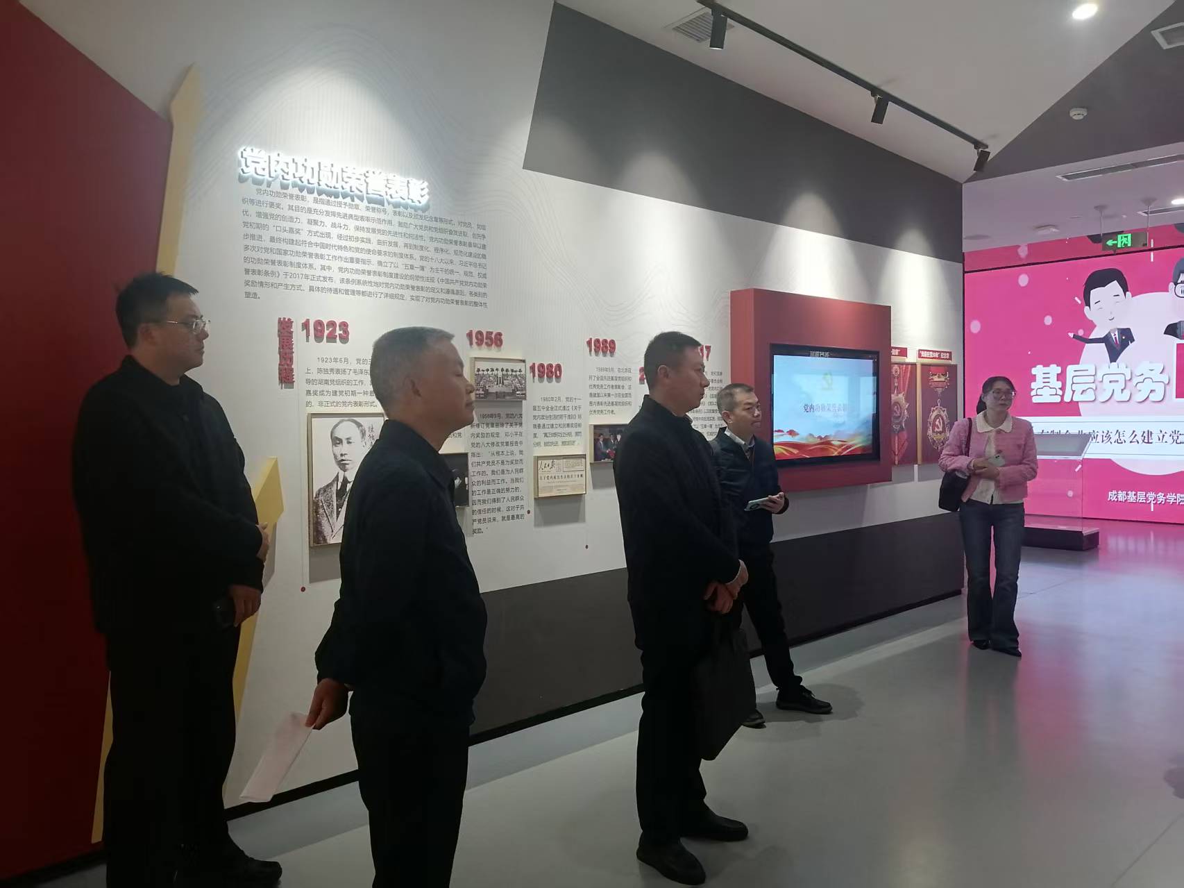 下午,学院调研团队前往成都基层党务学院开展实地参观学习。在副院长牟亮、胡逸群的陪同下,院务委员赵倩进行详细讲解引导,先后参观学习了展陈大厅、主题教室、党建书苑及特色实训室,深入了解了该院在党务培训专业化、课程体系模块化、教学手段情境化等方面的创新办学机制与实践经验,并就提升基层党务工作的经验做法进行了交流。