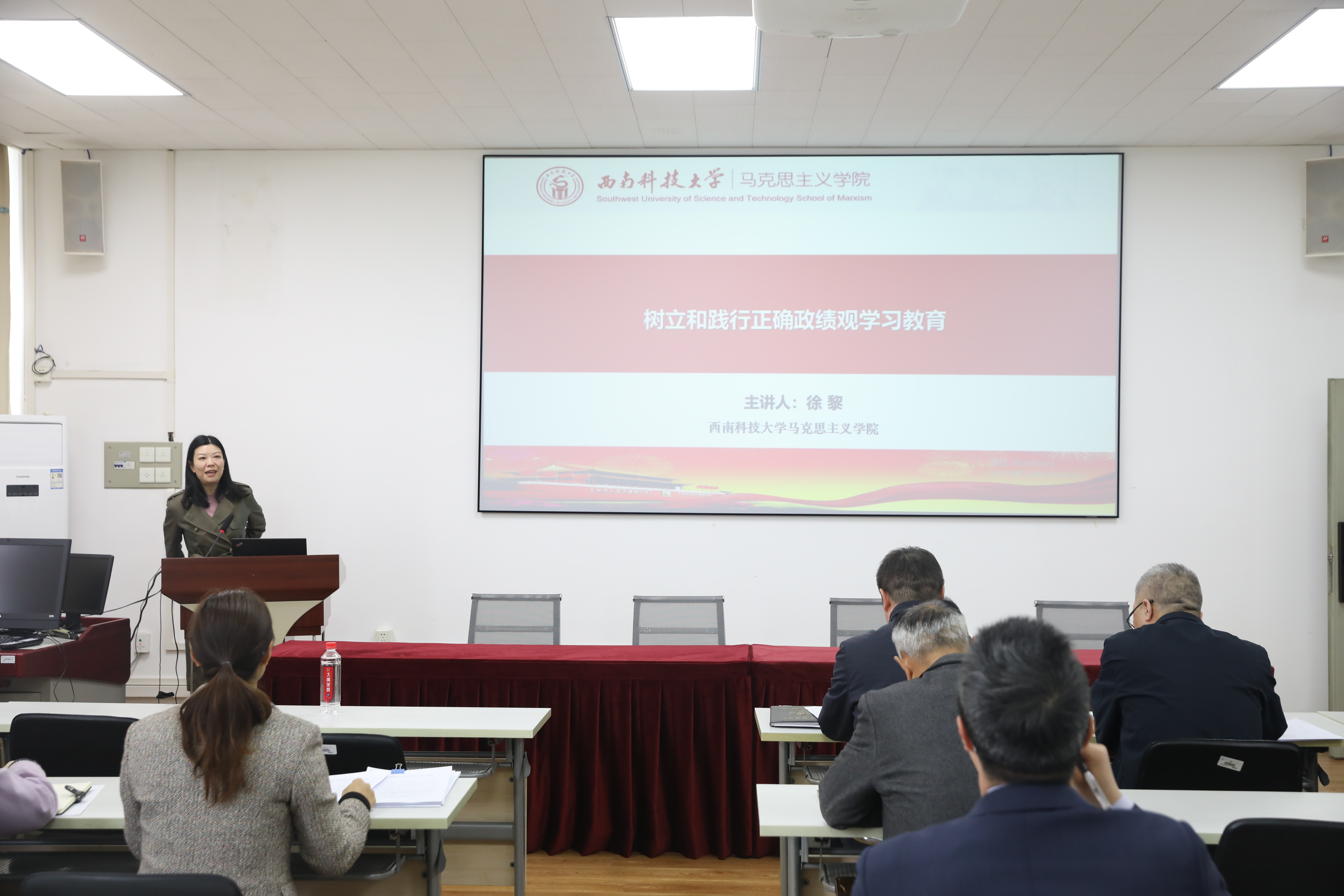 为深入学习贯彻习近平总书记关于树立和践行正确政绩观的重要论述,教育引导学院党员职工树立和践行正确政绩观,3月30日下午,继续教育学院邀请马克思主义学院徐黎教授为学院全体教职工讲授专题党课。